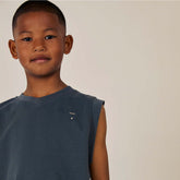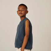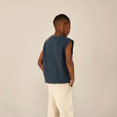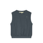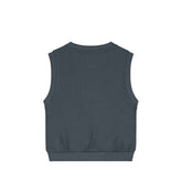 This sleeveless vest is made from soft organic cotton fleece. Features a ribbed V-neck, armholes and hem. The Gray Label logo is sewn on the chest.