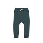 A pair of unisex sweatpants, lined with cozy cotton fleece, a low crotch and a back pocket on the right side. Equipped with an elastic waistband and beige drawstring, as well as elastic ankles, both in rib quality. The beige embroidered Gray Label logo is located directly above the back pocket.