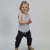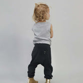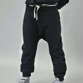 A pair of unisex sweatpants, lined with cozy cotton fleece, a low crotch and a back pocket on the right side. Equipped with an elastic waistband and beige drawstring, as well as elastic ankles, both in rib quality. The beige embroidered Gray Label logo is located directly above the back pocket.