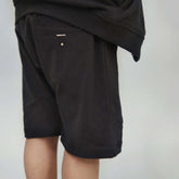 Made from soft organic cotton jersey, these shorts feature a dropped crotch and a back pocket on the right side. They have an elasticated ribbed waistband with an adjustable herringbone drawstring. The Gray Label logo is sewn just above the back pocket.