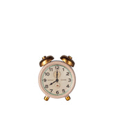 The bell rings and a new day full of adventure begins. The small alarm clock is made of metal and has many small details.