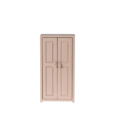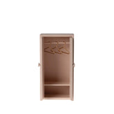 A small wooden wardrobe. It helps the mouse family organize their wardrobe. The wardrobe comes with three golden hangers.