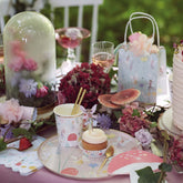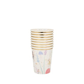 Make a fairy party extra special with delicious drinks served in these cups. They feature beautiful illustrations of fairies and flowers as well as shimmering gold foil stars and a gold foil border.