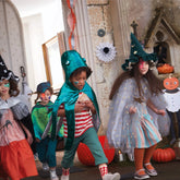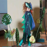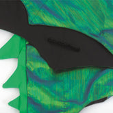 Little ones love pretending to fight bad guys. Therefore, a dastardly dragon outfit is a must for every magical adventurer's disguise gear! Featuring a shiny green lamé cape with spikes on the back and black glittery elastic wristbands. The headdress, also made of green lamé, has black embroidered eyes and orange flames. Perfect for hours of imaginative play.