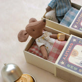 A classic Maileg item. This mouse is ready for hours of gaming and sleeps soundly in the matchbox. The clothing and bedding comes with unique Maileg prints and beautiful colors.