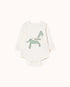 A long-sleeved bodysuit made from the softest organic cotton. It has loose shoulders and a snap fastener on the legs and upper back for easy dressing and undressing.