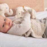 "140 years of Steiff" - Inspired by the first Steiff cuddly toy from 1880. The moment gives rise to countless children's dreams: they invite you to cuddle, act as companions, comforters and sources of ideas. This special specimen from the family of classic stuffed animals is designed especially for the very young. The elephant with rattle was made from extra fine plush for baby-soft skin. The trunk, legs and elephant tail encourage the child to grasp. But the cute little animal can also make itself known acoustically, so all of your little one's senses are addressed and help with development. You can recognize this original Steiff cuddly toy by its stainless steel "button in ear".