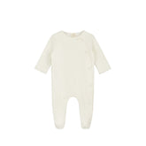 This newborn onesie with feet is made from the softest organic cotton fleece with a little elastane for the perfect fit. It has babylock processing, snap fasteners on the side and in the leg area for easy putting on and taking off. It keeps your newborn warm and cozy in the first few weeks, so that they will feel comfortable right away.
