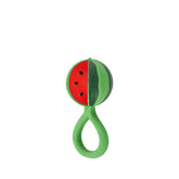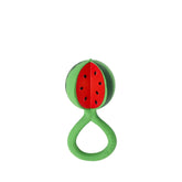 The outside of the rattle is made from 100% natural rubber and inside there are upcycled cherry stones that transform this teether into a rattle. 2 in 1!