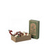 A gift box with 4 ornaments. Each ornament is wrapped in tissue paper, together they are packed in a box. It is decorated with the drawings of Dorte Mailil. The set includes drum, candy cane, pretzel & rocking horse.