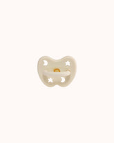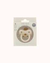 The Hevea pacifier is inspired by the natural rubber of the Hevea brasiliensis tree in its purest, milky-white form.