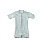 Seersucker swim jumpsuit Max in sea blue/white striped