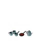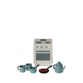 A coffee tin, two cups, a pot, and a pan for the mouse family, with delicious puff pastry cakes, a Scandinavian delight during the cold winter months. All these items come in a paper box designed to resemble a small oven.