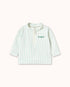 This long-sleeved baby swim shirt with a fine cyan stripe pattern on a cream-white background combines protection, comfort, and style. Thanks to the stretchy, quick-drying material, it offers complete freedom of movement in the water. The front zipper makes it easy to put on and take off.