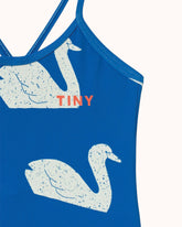 This beautiful swimsuit is made from soft, stretchy material, offering maximum comfort. The Big Swans print on a blue background and the smooth front create a simple yet charming look – perfect for sunny days.