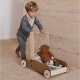 INDOOR WOODEN PUSHER The Bonnie pushcart makes a great assistive walking aid for children and a toy storage cart. The trolley's wheels and handle ensure easy maneuverability around the home.