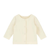 Functional style in a soft organic cotton fleece with a touch of elastane for ultimate comfort. It has long sleeves, a round neckline and a snap button closure down the front. The Gray Label logo is sewn on the back, just below the neck.