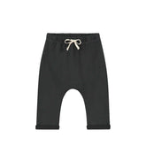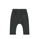 These pants are made from soft organic cotton fleece with a little elastane for a comfortable fit. They have an elastic waistband with drawstring and a right back pocket. The leg is slightly tapered and has folded hems. The Gray Label logo is sewn just above the back pocket.