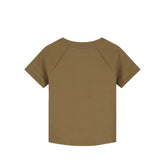 This short-sleeved T-shirt is made from the softest organic cotton jersey. It has a ribbed crew neck, fine quilting and a rounded hem.