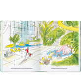 A little girl visits a water park with her mother and dreams of what she'll dare to do later: brushing lions' teeth, for example, or petting polar bears. Meanwhile, the water park suddenly turns into a jungle, the North Pole or a container port. With dynamic strokes, Mattias De Leeuw stages a cheerful game with reality and fantasy. An enchanting picture story about how wonderful it is to be small and how exciting it is to grow up.