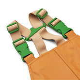 Das Regenbekleidungsset hält Ihre Kleinen an regnerischen Tagen trocken. Dank Hosenträgern und Schlaufen unter den Füßen, sitzt der Anzug stets fest und dicht. Dieses Regenbekleidungsset hat eine Wasserdichtigkeit von 10.000 mm und das Kleidungsstück ist aufgrund der getapten Nähte vollständig wasserdicht und zusätzlich winddicht und atmungsaktiv.
