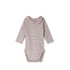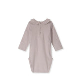 Ein langärmeliger Body mit süßem Kragen, aus einem weichen Bio-Baumwolljersey und ein wenig Elastan für die perfekte Passform. Er hat lockere Schulterpartien und einen Druckknopfverschluss im Beinbereich.