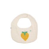 Ein Lätzchen aus zwei Lagen weicher Biobaumwolle. Durch zwei Druckknöpfe kann es perfekt angepasst werden und hält nicht nur die Sauerei fern, es ist auch ein toller Hingucker!