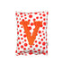 Buchstabenkissen Orange auf Weiß mit orangeroten Punkten