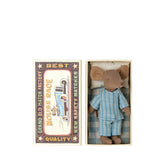 Ein klassischer Maileg-Artikel. Diese Maus ist bereit für stundenlanges Spielen und schläft fest in der Streichholzschachtel. Die Kleidung und Bettwäsche kommt mit einzigartigen Maileg-Drucken und schönen Farben.