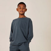 Dieses langärmlige oversized T-Shirt ist aus weichstem Bio-Baumwolljersey gefertigt. Es hat einen gerippten Rundhalsausschnitt, feine Steppnähte und einen abgerundeten Saum, sowie einer Vordertasche auf Brusthöhe.