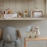 Dieser verspielte Kinderwagen kann für viele Maileg-Freunde verwendet werden, er ist speziell für die Mikrogröße gemacht. Die sanften Farben und das Design repräsentieren den Vintage-Look und sind ein Muss für alle Miniaturfamilien mit Baby.