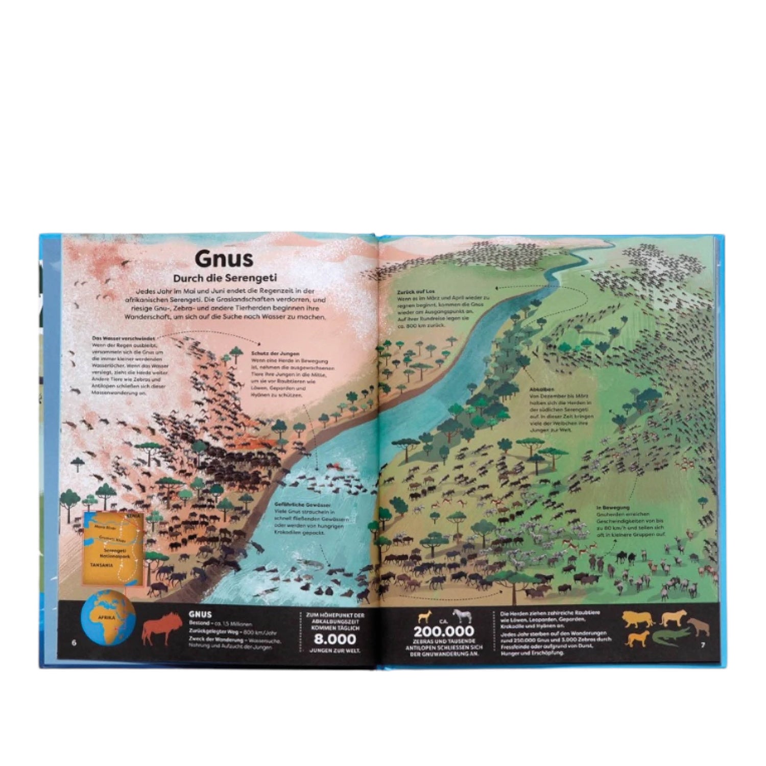Wer ist bereit, einige der atemberaubendsten Tierwanderungen der Welt mitzuerleben? Milliarden von Tieren machen sich in Herden, Schwärmen und Kolonien auf die Reise, um Nahrung, Wasser oder einen sicheren Ort für die Aufzucht ihrer Jungtiere zu finden. Dieses Buch begleitet 12 Tierarten zu Land, zu Wasser und in der Luft bei ihren erstaunlichen und manchmal gefährlichen Reisen - wie die rätselhaften Aale oder die unglaublichen Monarchfalter, die sogar über mehrere Generationen wandern.